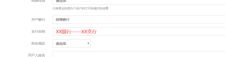 如在里面找不到所需银行,则随便选择一个,然后在下面的支行名称填写:XX银行——XX支行