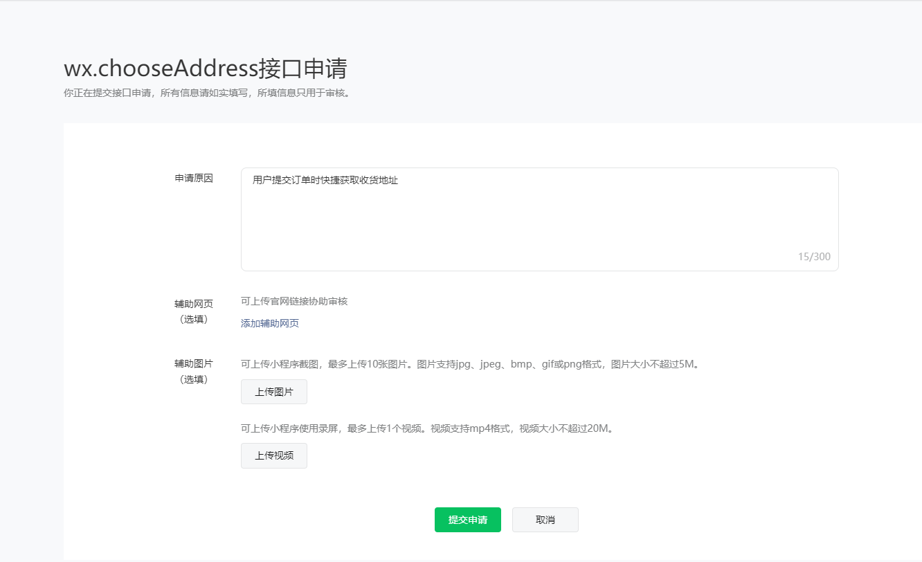 申请理由可以填写:用户提交订单时快捷获取收货地址、帮助用户快捷填写收件地址