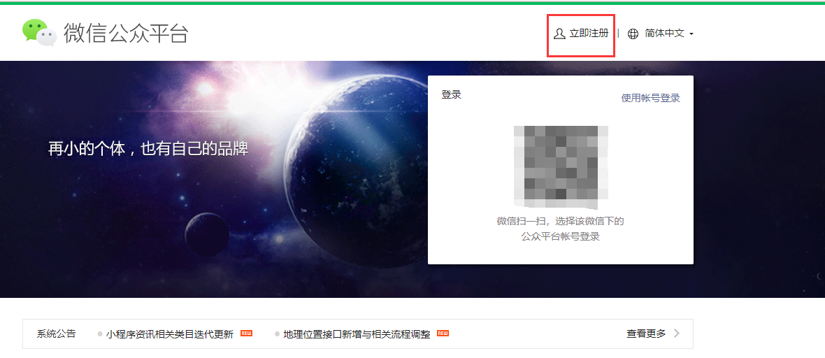 1、如果没有小程序,可以先注册小程序,进入微信公众平台官网,点击上面的“立即注册”