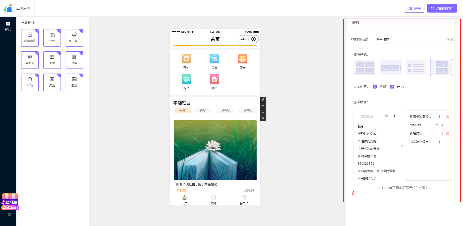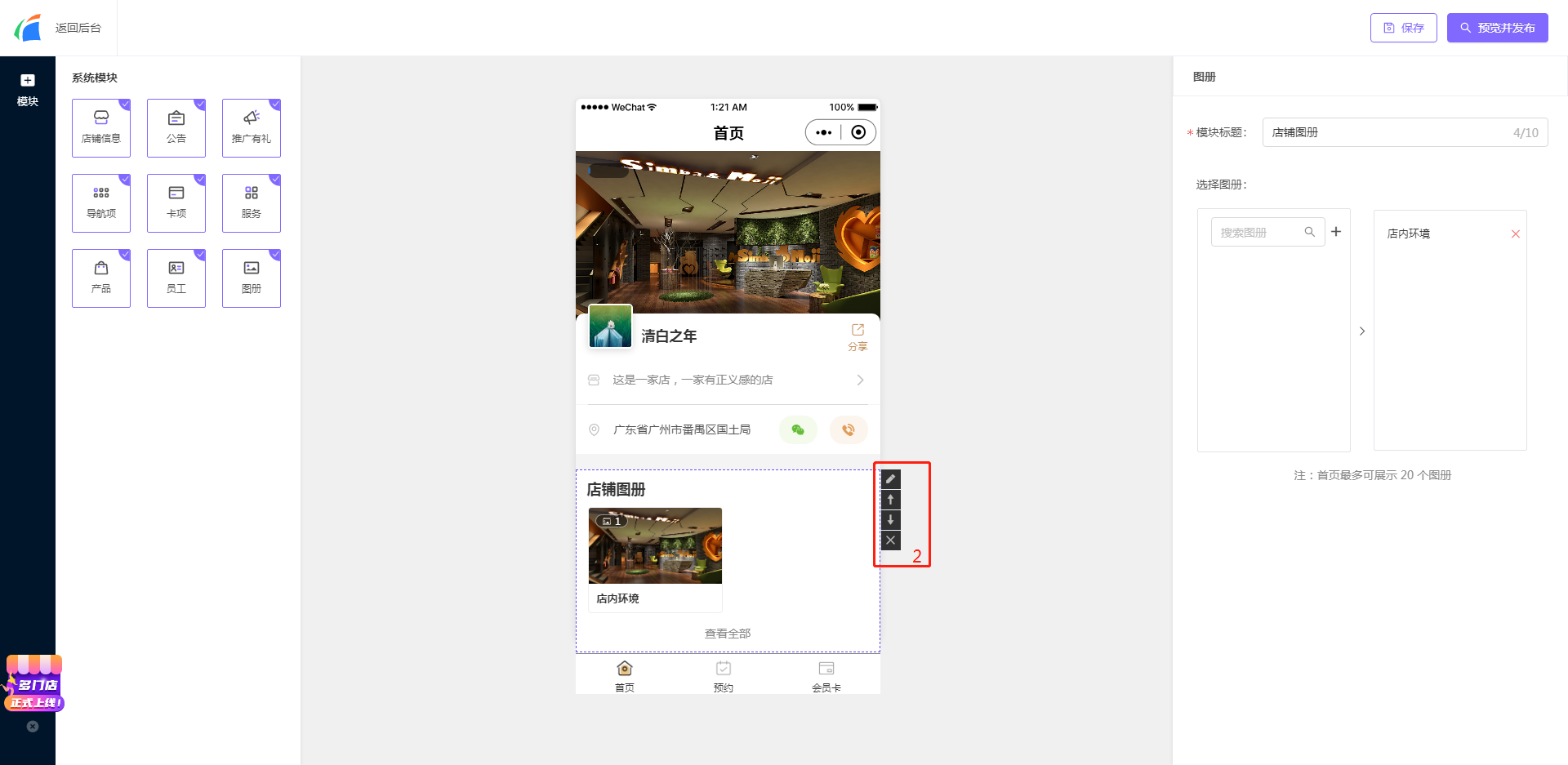 **2-1 总部可对店铺展示模块、模块标题、模块样式等进行编辑**