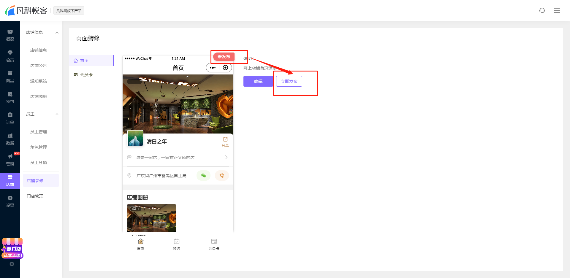 确认“立即发布”后,会替换店铺小程序当前门店的展示数据。