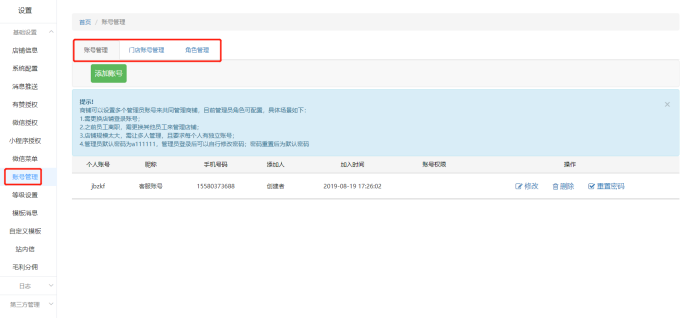 第一步,现在角色管理设置员工角色的权限(可操作的模块);第二步,如果使用了门店模块,在门店账号管理添加门店及片区的账号信息;第三步,在账号管理添加其他员工账号(比如财务、客服等);
