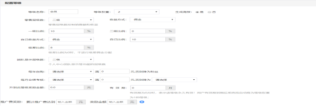 (3)剩余佣金总比例/级差比例可以输入也可以不输入,不输入的话默认该等级不会有剩余佣金收益;