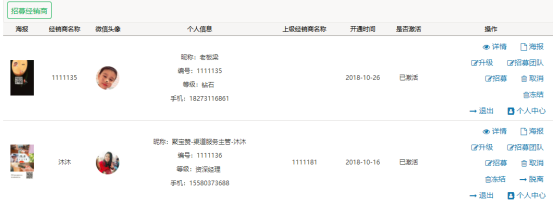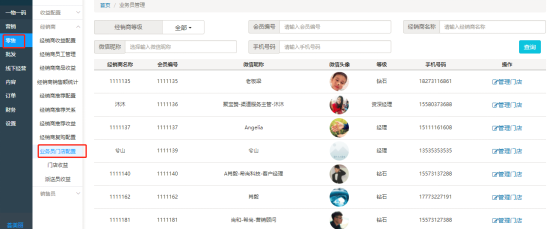 (2)输入经销商等级,经销商名称和微信昵称,点击“查询”可以实现模糊查询;