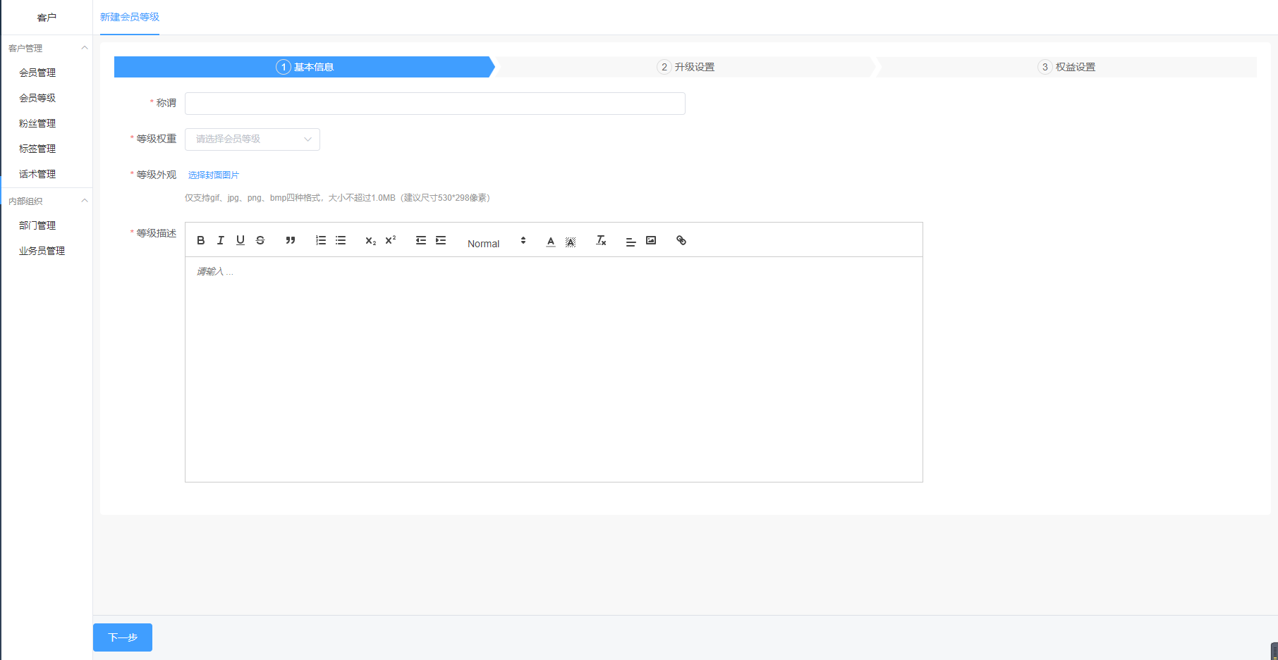 注意:等级权重指的是会员级别的等级高低。权重数越大的,则说明会员级别越高