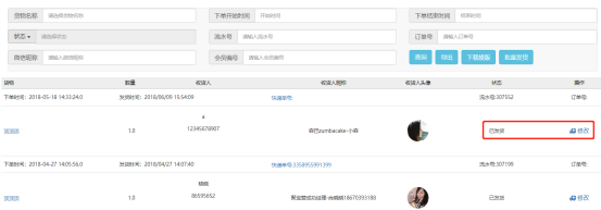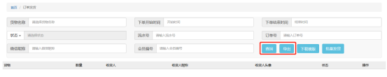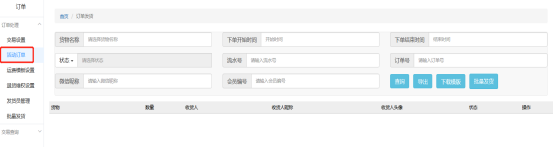 导出:点击导出按钮,导出所有订单处理记录字段信息,导出字段如下:流水号、货物名称、数量、收货人姓名、手机号、邮编、收货地址、快递名称、快递单号、订单处理时间、状态。