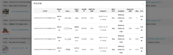 显示所有的订单和每笔订单的收益详情信息,可对订单进行纠错,支持导出订单和订单的佣金信息。