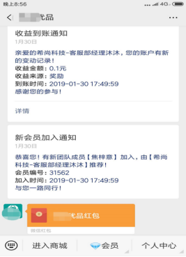 (2)购买红包开启后,下级购买商品将给上级和购买者按商家配置概率和金额给上下级抽送红包,购买红包只能选择商家奖励方案;