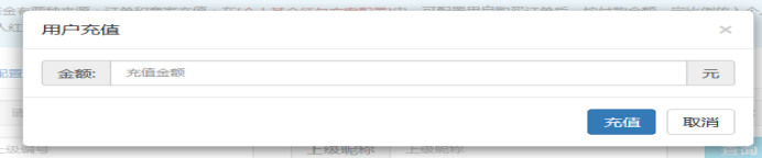 找到需要充值的用户,点击充值按钮输入充值金额即可。