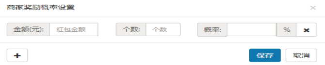 点击【添加】按钮,输入红包金额(按微信红包规定:金额必须大于1元小于200元/个)/个数/中奖概率。