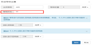 设置时,权重和积分等级只是方便商家识别,可根据商家实际情况进行填写,自己/一级伙伴/二级伙伴/三级伙伴空白处填写需达到的进货金额数字。