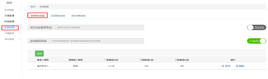 (1)首单培训奖励:推荐人首次推荐同级别或更高级别的代理商获得首单培训奖励(若开启进货推荐奖励,被推荐人首次成为代理商时候,推荐人可获得首次培训推荐收益+进货推荐奖励,未开启时,只能享受首次培训推荐收益),最多设置三级;
