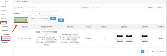 由分销商商家后台—【财务】—【分账管理】—【供应商进件】邀请供应商,供货商点击链接进入进行注册;