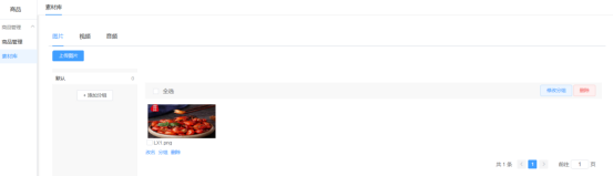 素材库主要是用来管理商品图、音频和视频相关信息,方便做分类管理。