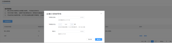 ③可在所有分销商页面,对不同分销商设置不同等级,分销商即可享受对应等级的成本价折扣。