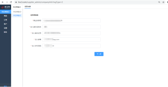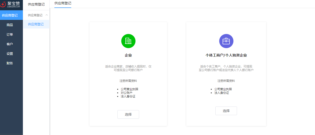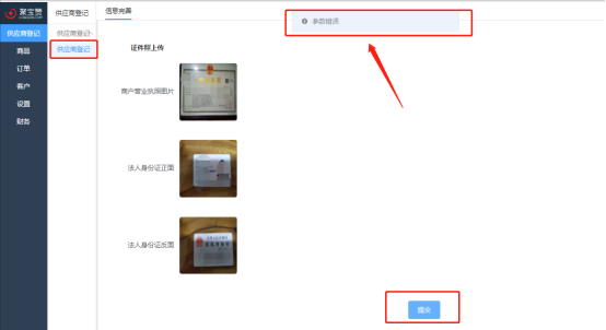 商家可根据实际运营情况(企业/个体工商户)进行供应商登记,填写相关信息之后提交即可;