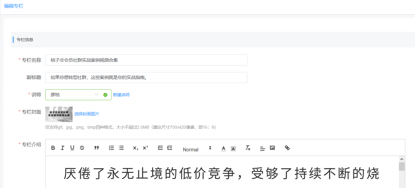 (5)填写专栏介绍:为必填项,可以采用富文本输入,支持图文混合。