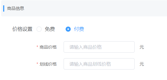 (6)价格设置:默认为免费,可以勾选付费,依次填写商品价格和划线价格。