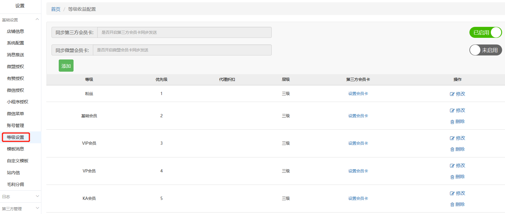 同步微盟会员卡:对接的微盟商城设置好会员卡之后(不支持付费会员卡),聚宝赞等级可同步有赞会员卡,升级到该会员等级之后,可自动同步领取微盟会员卡。
