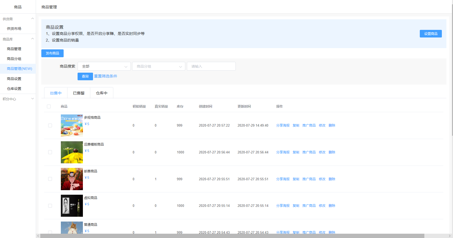 操作路径:商品-商品库-商品管理(New)