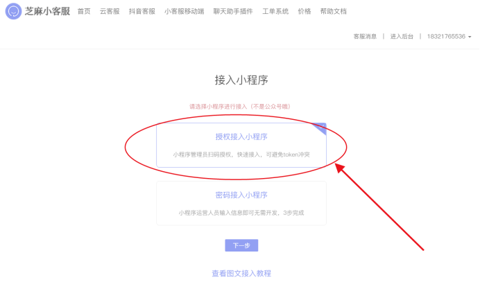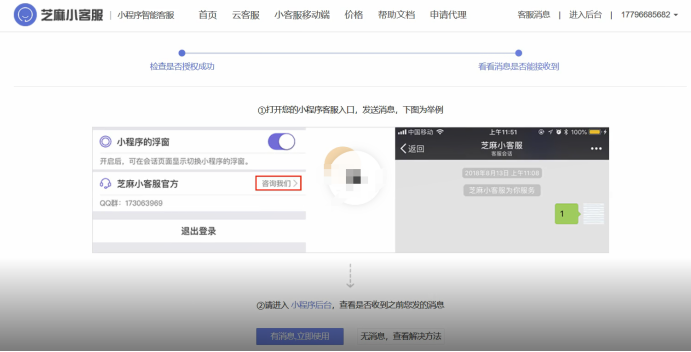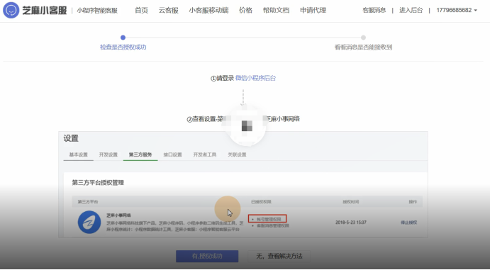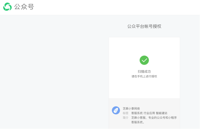 ### 5、授权成功后,自动返回到小芝麻客服后台界面