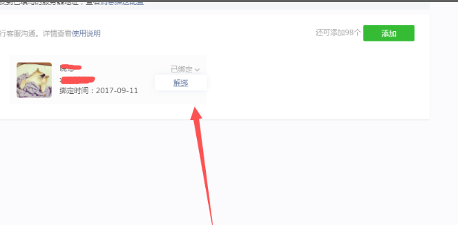 同样的当不需要这个客服的时候可以解绑如下图所示