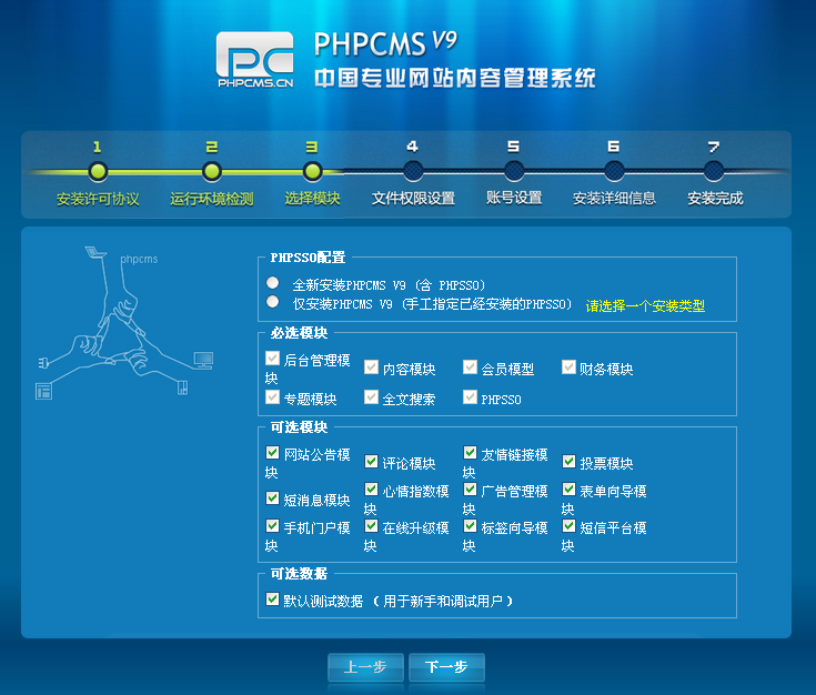 点击“下一步”,即进入模块安装以及设置 PHPSSO界面,如下图所示