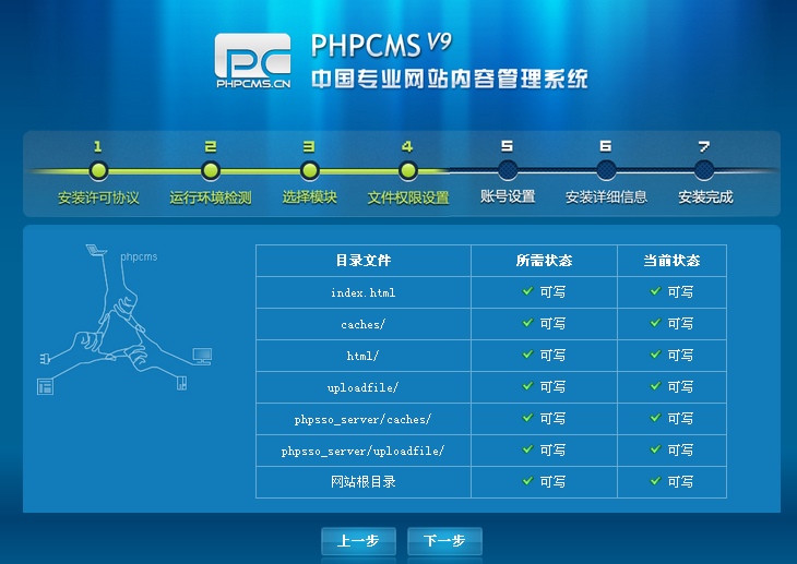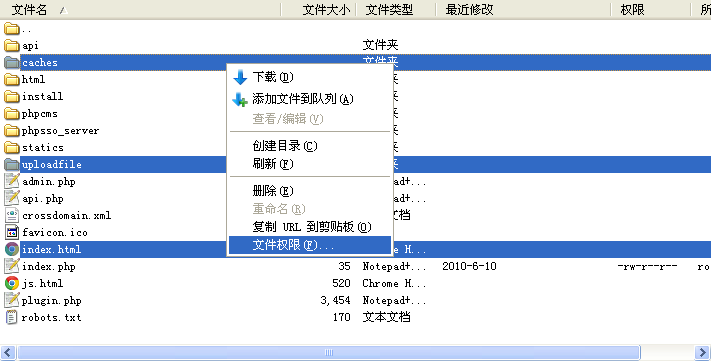 ##### 二、解压并上传 PHPCMS V9程序到服务器且修改相应目录权限