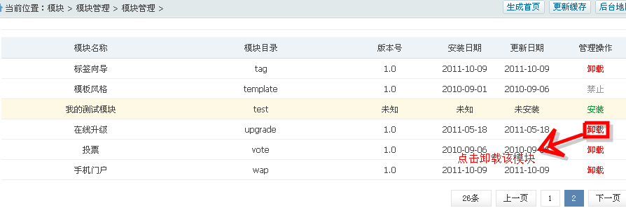 安装后的模块如果你不需要,可进行卸载。如下图: