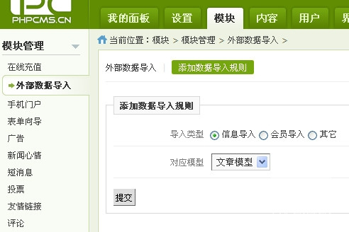 选择 信息导入规则 类型