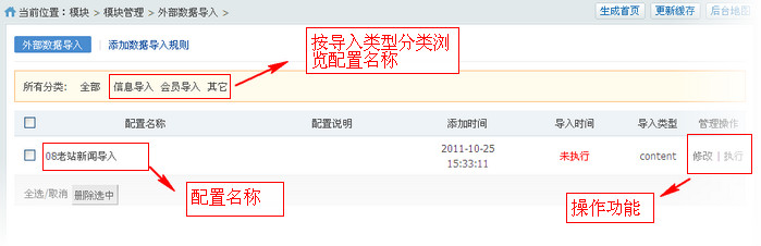 **1.外部数据导入配置列表**