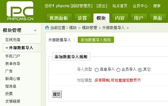 > 1. 支持信息、会员、及任何指定表导入功能