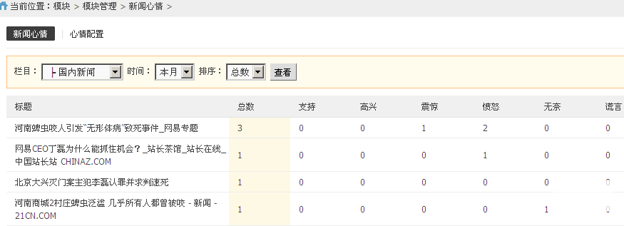 心情是网站为浏览者提供了一个表达心情的互动模块。 管理员可在后台手动添加心情类型,并设置对应图片。 可浏览查看心情信息。