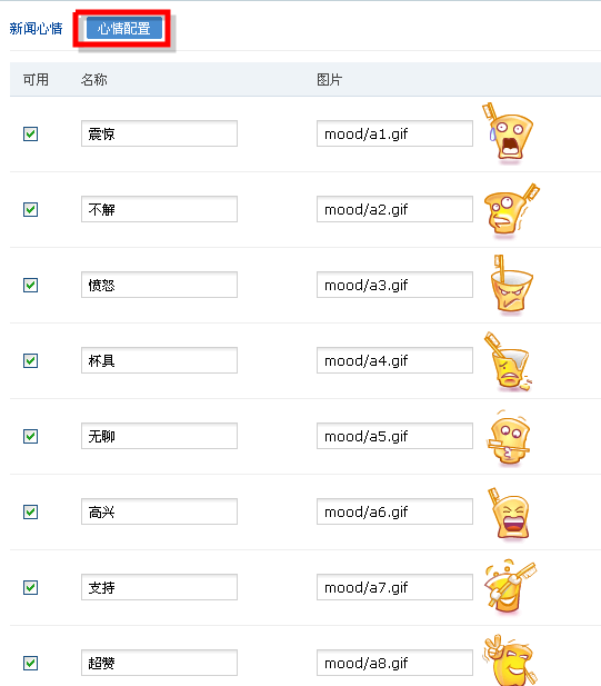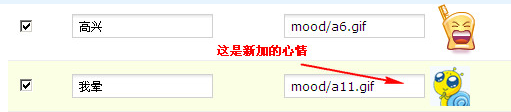 b. 心情配置添加新复制的图片心情,提交。如下图