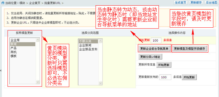 > 3、更新企业URL,只需选中企业库模型即可,不必选分类。