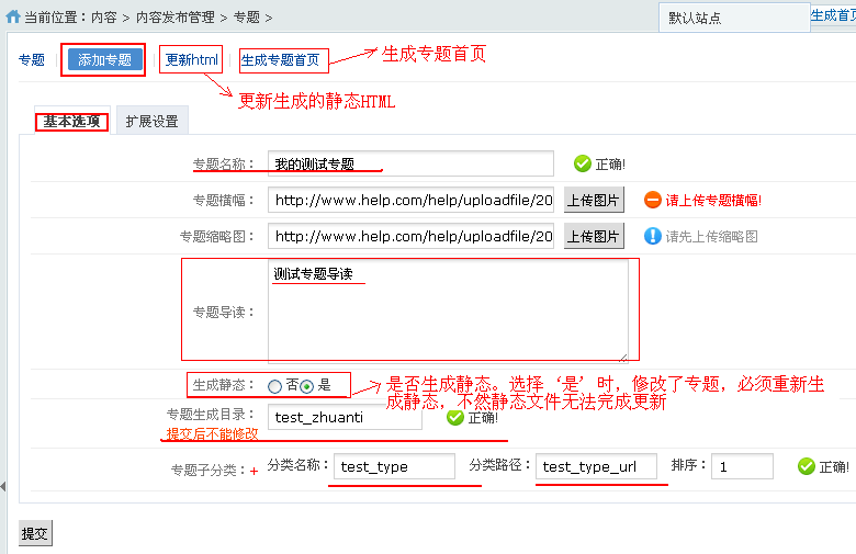 修改专题。和添加相同。输入修改信息提交即完成操作。