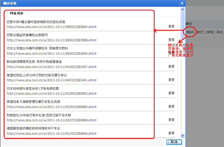 添加成功后,测试你的网址采集规则是否正确,如下图所示: