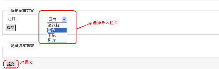 点击“导入”,跳转到选择栏目页面。如下图所示: