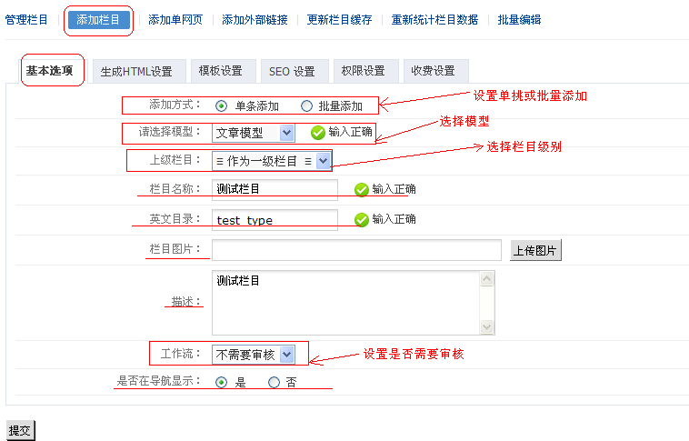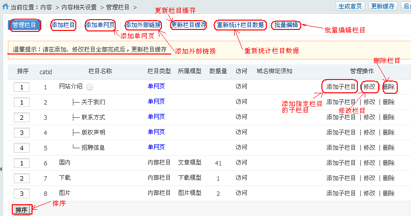 **2.管理栏目**