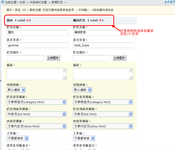 - 批量更新栏目页