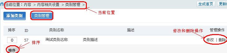 对类别进行管理(排序,删除,修改)。如下图所示: