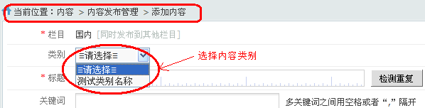 添加成功后,在对应栏目内容添加时就可以选择类别。如下图所示: