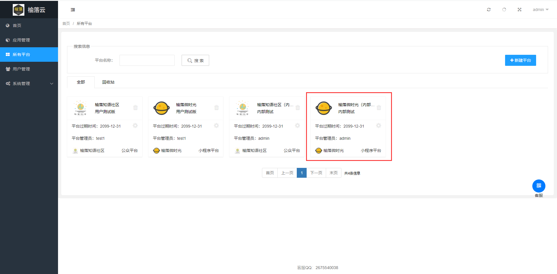 ## 1.点击所有平台后进入自己的平台