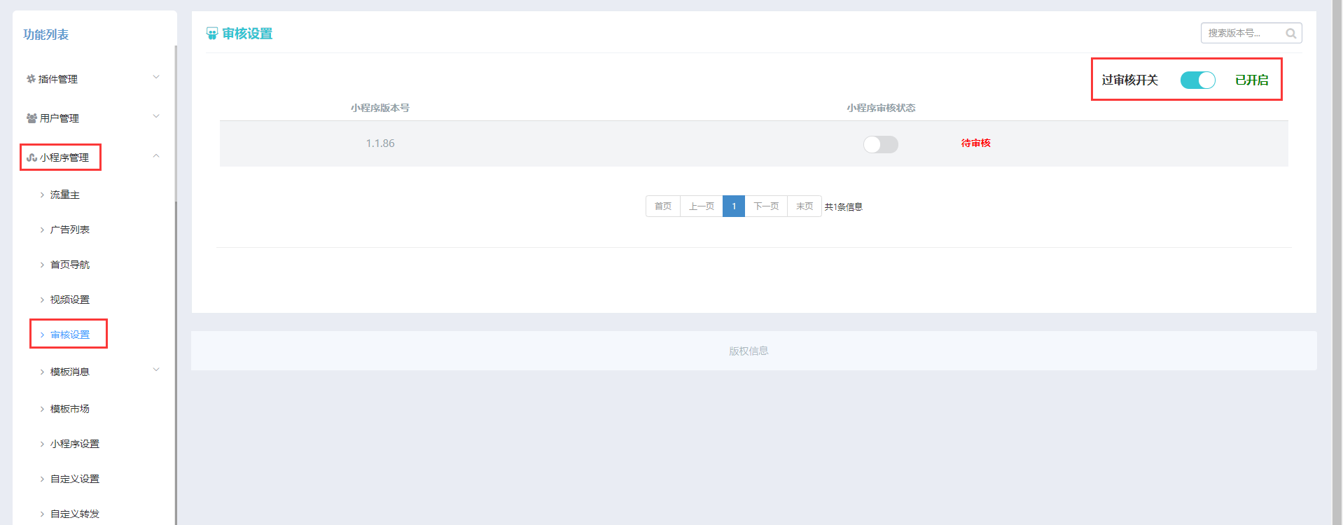 ## 5.进行小程序审核设置【小程序管理->审核设置】