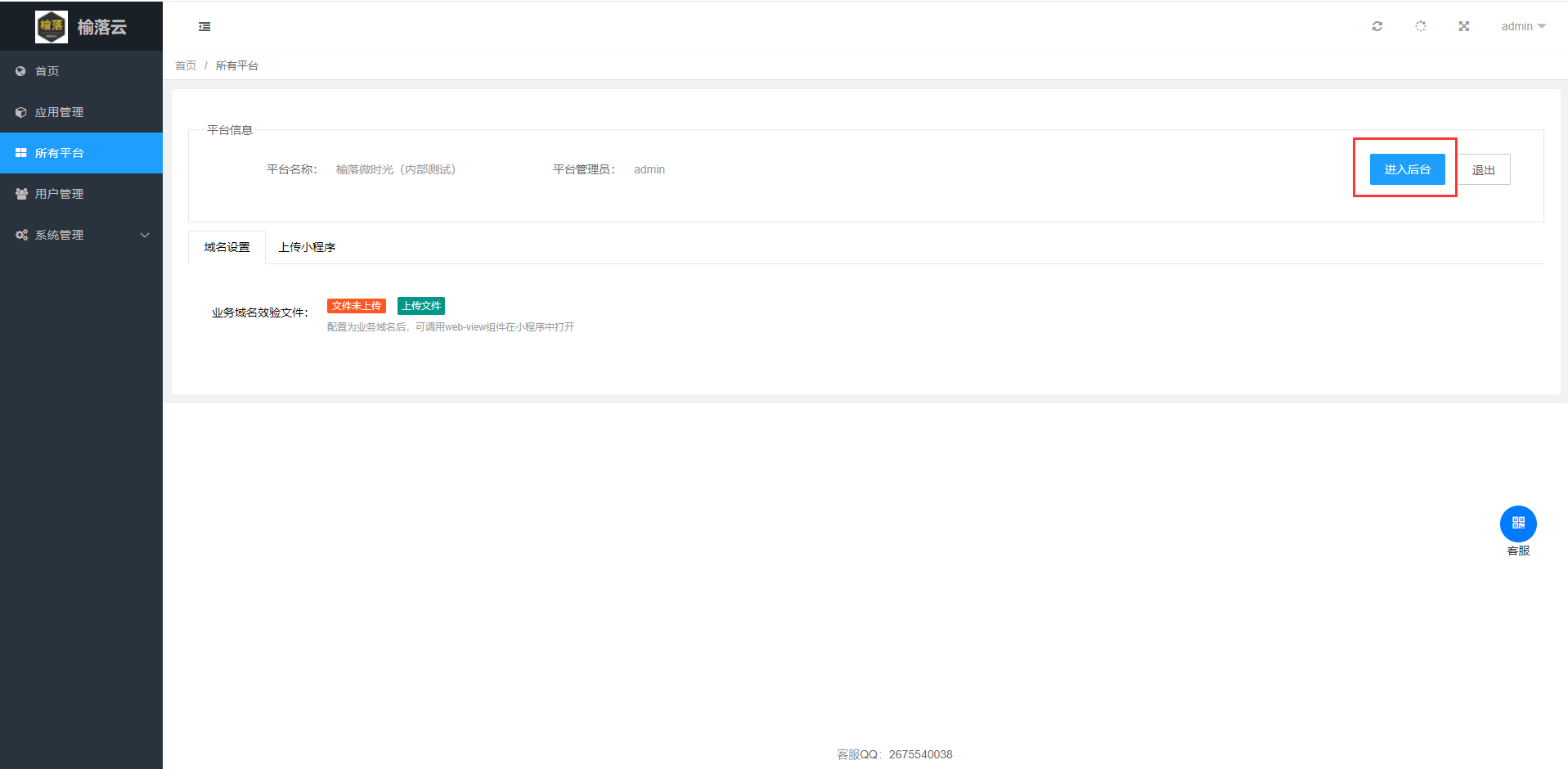 ## 2.进入平台后点击进入应用后台
