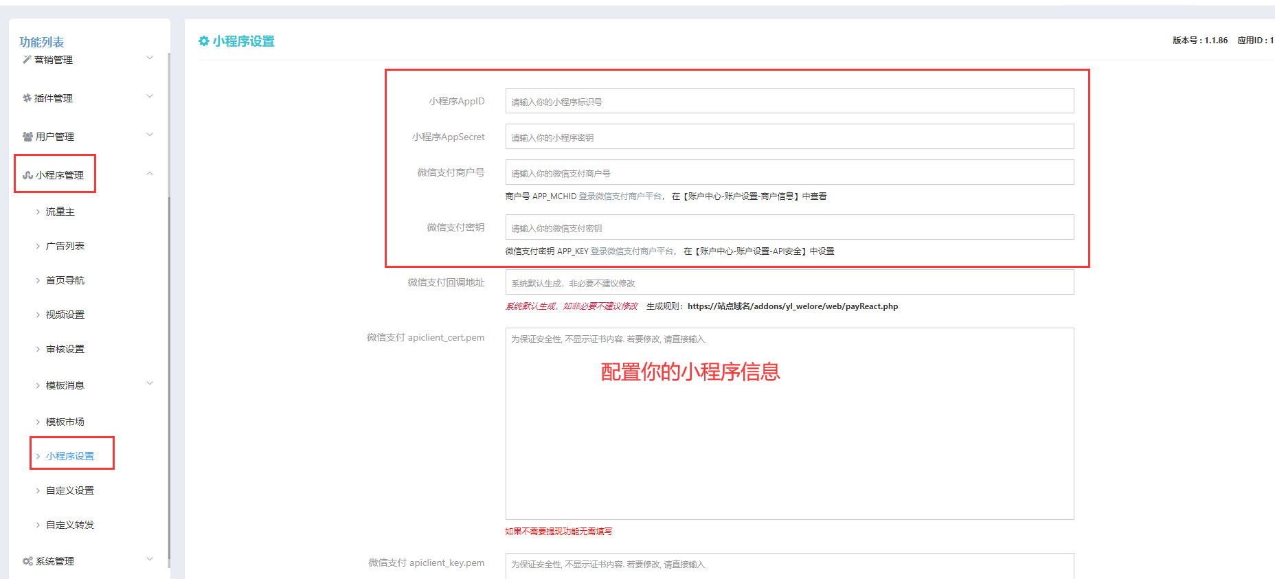 ## 3.进行小程序参数设置【小程序管理 -> 小程序设置】