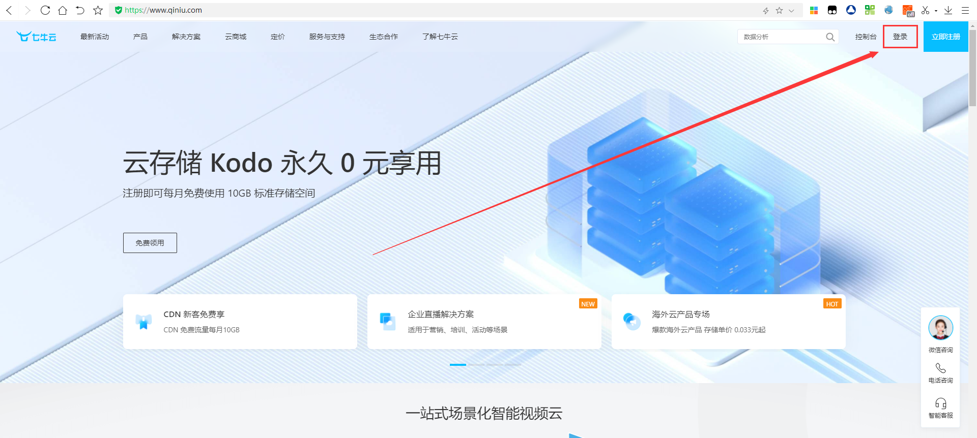 ## **1.登录七牛云**