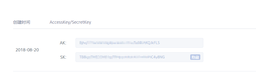 ## **8.找到你的密匙,复制你的 AK 和 SK**