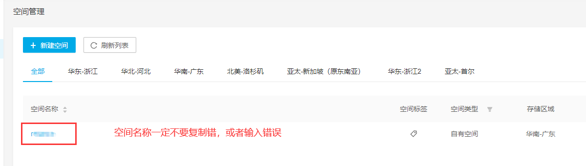 ## **9.找到空间管理,复制空间名称**