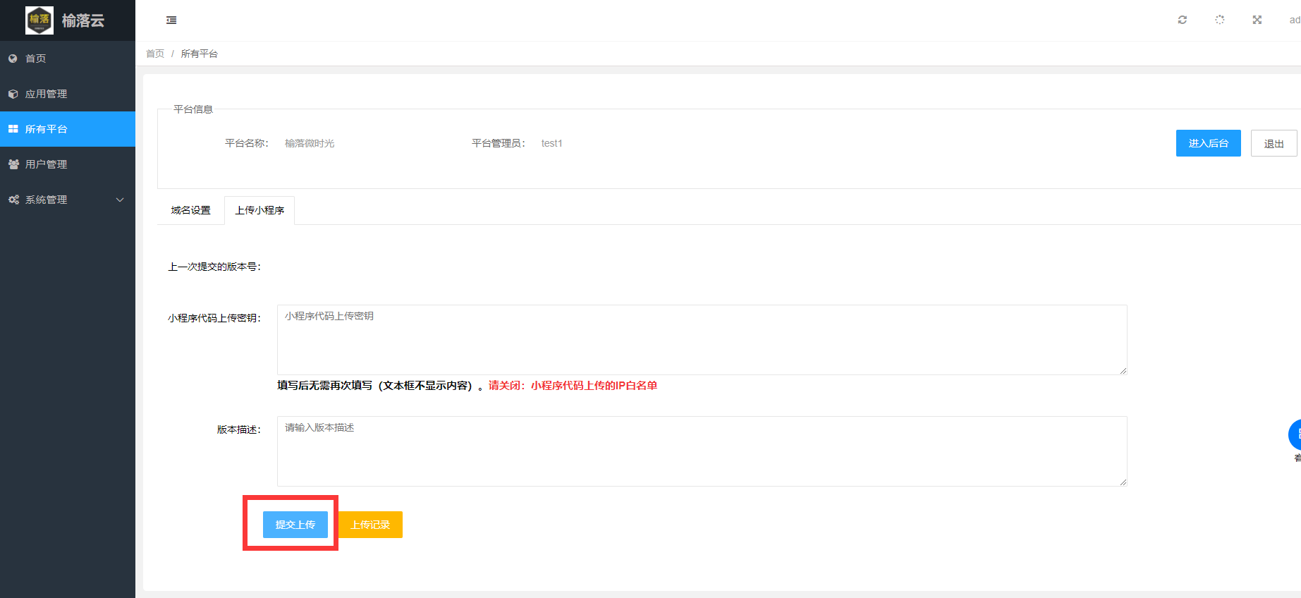 ## **2.新建完小程序平台后,需重新上传小程序**